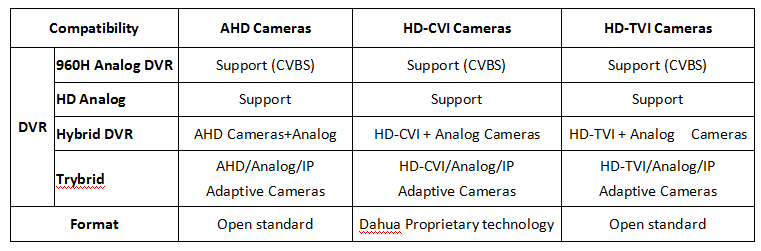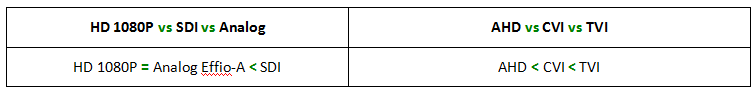 AHD vs HD-CVI vs HD-TVI ( 1080P)